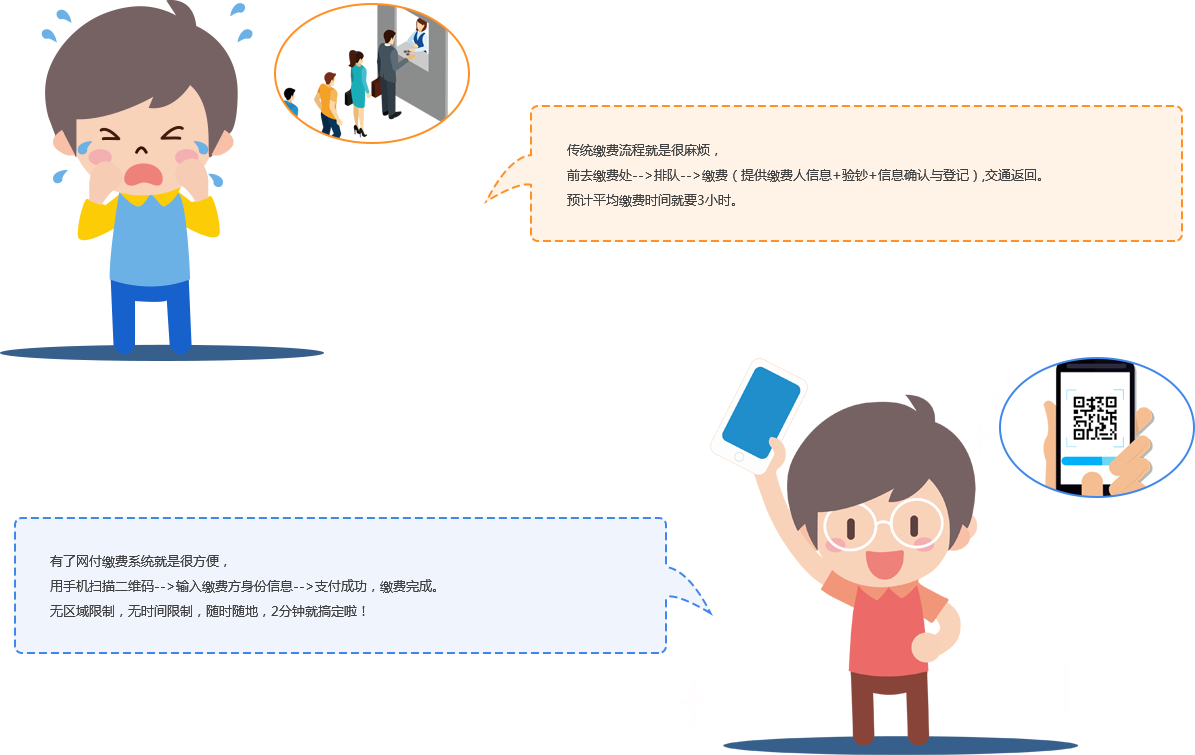 缴费流程长!数据不透明!查账不方便!培 训机构缴费中的这些问题,随着网付智慧缴 费系统的接入,学员基本信息快速查询、缴 费明细快速了解。缴费者只需扫一扫,输入 个人信息,便可查看具体缴费金额,迅速完 成在线缴费。